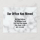 Display text says ' Our office has moved'. You can personalize your postcard with your company's name, new address, and phone number. The background has a faux white marble look.