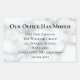 This faux marble sticker has seven lines of black display text. You can edit it as necessary to show a custom message such as the name of your company, new address, and phone number.