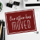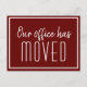 We have a new address moving postcards for a modern business or chic corporation looking to update their clients on a new location. Our office has moved. Classy, minimalist typography on red and white cards for your company. Customize the change of address on the back.