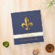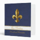 Our Wedding or any other title, on textured blue background. Elegant Fleur-de-lis design. Enter your info to personalize.