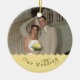 This elegant ornament makes a great keepsake for a married couple. The wedding picture has an scallop edge on the bottom and it reads "Our Wedding" on a fancy font. Add the wedding date and the names of the bride and the groom on the back.