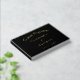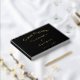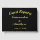 Fancy floral pattern on the back for the registry guest book. The bride and groom's names with date and guest registry are written on the front with a black background. Personalize the text for your information.