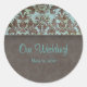 Damask wedding rsvp save the date Stickers in turquoise blue and brown. Trendy and elegant.