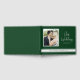 This emerald green wedding guest book features a traditional design. It offers elegant script text and a square photo frame. Personalize with the names and wedding date of the couple