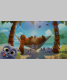 Un ours grizzli avec de mignonnes petites créatures de gremlin à la pelouse