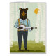 Illustration des vêtements de port d'un ours de hippie dans les bois jouant le banjo.