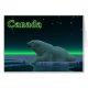 Un moment de paix dans la longue nuit arctique. Un Ours polaire repose au bord d'une zone ouverte dans la glace de la meute. Les aurores boréales brillent au loin ; les étoiles brillantes scintillent au-dessus. Le texte "Canada" apparaît également en vert et blanc éclatant. Les ours polaires sont en danger. Combien de temps encore des scènes comme celle-ci pourront-elles se produire ? S'il vous plaît aidez à sauver les ours polaires de l'extinction.