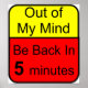 Out of my mind. Be back in 5 minutes. A bright yellow and red caution sign stating the state of your mind. A funny t-shirt lets others know that you occasionally step out for a couple of minutes. Not to worry, you'll be right back.