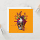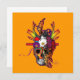 Contemporary Interpretive Southwestern iconic skull art of Día de los Muertos (Day Of The Dead) celebration by artist Margaret Loftin Whiting with skull, mask, flowers, bird and flowing ribbons. Digital collage poster art alive with bright colours of the Southwest.