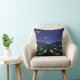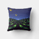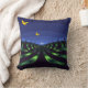 This fantastic abstract throw pillow features a surrealistic landscape of sky in waves of blue above green and black land reaching back to infinity, all in a luminous light. Three golden doves seem to be flying out of the infinite void. The image is repeated on the back.