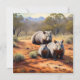 Outback Trio: Wombat Wanderers" captures the charm and resilience of three wombats basking in the sunlit beauty of the Australian outback. The acrylic painting showcases the earthy red tones of the rugged landscape, contrasted by the warm, soft fur of the wombats as they lounge or explore their surroundings. Native flora, scattered rocks, and hints of golden light frame the scene, celebrating the unique harmony of these iconic marsupials with their harsh yet stunning environment.