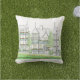 Original Hand Drawn Outdoor 16x16 Victorian Homes Pillow with Green on the back