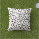 This outdoor accent throw pillow is shown with a lovely black and white botanical print.