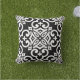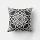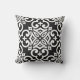 This outdoor accent throw pillow is shown with a lovely black and white Moroccan print design.