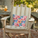 This outdoor accent throw pillow is shown with a lovely tropical flowers print.
