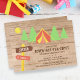 Celebrate your child's birthday with this fun party invitation featuring an outdoor scene set against a faux wood background. Add all your party details to personalize. Perfect for the boy or girl who loves adventure and the great outdoors.