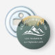This is the perfect accessory for a mountain-themed bachelor weekend. This design features a forest green background with pine trees and neutral colours. There is space for personalization with "BACHELOR WEEKEND," the groom's name, and the event dates, making it a memorable keepsake for every guest.