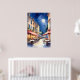Poster of a bright, full moon, a charming street lined with cozy cafes and vibrant flowers is illuminated, inviting passersby for a night out. The cobblestone pathway is adorned with patio tables and chairs, creating a serene and romantic atmosphere.