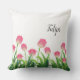 This outdoor accent throw pillow is shown with a lovely pink tulips print.