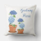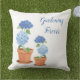 This outdoor accent throw pillow is shown with a lovely garden potted hydrangeas art print.