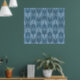 A tribal, boho design in a blue, geometric pattern.