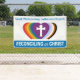 You can display your congregation's welcome to LGBT people with this bold outdoor Reconciling in Christ (RIC) heart banner. Select "material" to add/subtract grommets. Click "Customize It!" to edit text with your community's name. Give us a call at 651.665.0861 if you need assistance with customization.