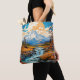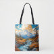 This cute tote bag features a creative and colourful river valley mountain landscape illustration. This shopping bag would make a wonderful gift idea.