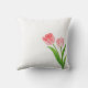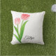 This outdoor throw pillow is shown a lovely pink tulips with water droplets print.