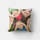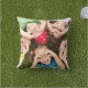 Outdoor throw pillow is shown in with a cute kids playing photo print.