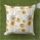 This outdoor accent throw pillow is shown with a lovely garden of golden roses and flowers print design.