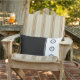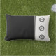 This outdoor throw pillow is shown in a black colour with a White accent panel with faux buttons.