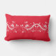 This outdoor accent throw pillow is shown in a solid colour of Red with a White floral vine print.