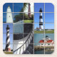 All of the northern Outer Banks Lighthouses: From the Currituck Light in Corolla (red brick lighthouse, top middle of the design), headed south next is the Bodie Island Lighthouse in South Nags Head (the horizontal/flat black and white striped lighthouse, top right of the design), next is the Roanoke Marshes Lighthouse in Manteo on Roanoke Island, then the beautiful historic Cape Hatteras lighthouse in Frisco on Hatteras Island, and lastly, cross on the ferry to Ocracoke Island for the Ocracoke Light. The stairs are inside of the Bodie Island lighthouse. I took all of the photos myself while visiting each of the lighthouses.