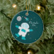 This cute boy's personalized round ceramic photo ornament has an out of this world space theme! The background has a dark teal colour with lots of yellow, white, and grey stars in the background. There is an astronaut on the bottom with a grey moon with a star flag at the top. There is a rocket ship floating to the right of the moon. On the right, you can easily customize the name and the year. On the backside, you can easily add your own photograph.