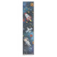 Featuring illustrations of outer space activities and icons as stars, a space rocket, an astronaut, moon, satellite, and other planet system elements