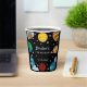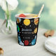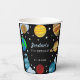 Planets theme galaxy boys' birthday personalized paper cups. Designed and illustrated by Kristine Lee www.kristineleedesigns.com