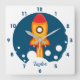 Outer Space Blast Off Rocket Ship Square Wall Clock
