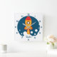An out of this world nursery or kid's bedroom clock. This cute outer space design features a space rocket ship coming out of the clouds. Room for personalized name, so this would make a fabulous baby nursery or grandchild gift. Dark blue background can be changed to any colour.