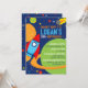 Outer Space Blue Rocket Birthday Invitations