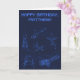 Know someone who loves all things having to do with outer space, rockets and astronauts? They'll love this personalized birthday card which features engineering style drawings of various space exploration equipment including a space shuttle, a rocket, a lunar module and a satellite. Done in the style of a mechanical engineering drawing style or blueprint style with lighter blue against a navy blue background. This card is ready to be customized with your own greeting on the front and the inside so it's suitable for birthdays, or any occasion.