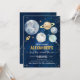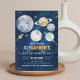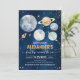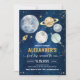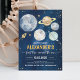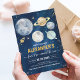 Blast off into a stellar celebration with this "First Trip Around the Sun" outer space birthday invitation. Featuring a whimsical galaxy design with planets, stars, and a cute rocket ship, it is the perfect way to announce your little astronaut's 1st birthday milestone. This modern navy blue and gold cosmic invite is fully customizable, ensuring your celestial-themed party starts with a high-energy lift-off.