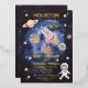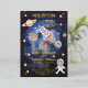 Welcome your little astronaut in style with this outer space themed, "Houston We Have a Boy" "Baby Shower" design with space-program look text and Mom's (or Mom and Dad's) name(s) and shower date in editable script text. All text is in real gold foil. Features a boy in a space suit with a rocket firing through the solar system going where no human has gone before. The stars have aligned and the galaxy is calling. Composite design by Holiday Hearts Designs.