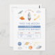 Celebrate your child's birthday with my cute astronaut quarter space-themed party postcard! This design features hand-painted watercolor elements, including a rocket ship, astronaut, and galaxy, accompanied by the typography "Blast off" or "First trip around the sun". All text is editable on this Astronaut Outer Space Rocket invitation, and classic invitations are available too! The design is suitable for boys and girls and is fully customizable for 1st birthday, 2nd birthday, and older kids. Find matching items in my shop.