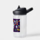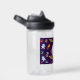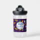 Outer space galaxy pattern water bottle features rocket, astronaut, planet, UFO, comet, moon, and stars with big moon for your kid's name.