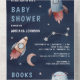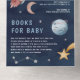 Amaze your guests with this modern space theme baby shower invite featuring cute rockets and planets with detachable book request card. Simply add your event details on this easy-to-use template to make it a one-of-a-kind invitation.