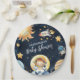 Outer Space Planets Rocket Navy Blue Baby Shower Paper Plate