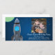 Celebrate the boy's birthday or special occasion with this cool space rocket ship in outer space. Dark blue sky with stars and colourful planets, and a silver rocket shooting through the sky. Colourful and bright. All Designs Copyright © 2012 www.CustomInvitesOnline.com