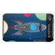 Dark night outer space sky with colourful and bright planets and white stars, with a silver rocket ship flying through the sky. Great for a little boys room for the guy who loves space and travel. All Designs Copyright © 2012 www.CuteComfy.com