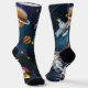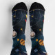 Outer Space Travel Galaxy Stars Moon Socks. Launch into the galaxy with this cute space station illustration socks. Featuring stars, planetary bodies in the night sky
