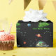 3-2-1... Blast off! Calling all aliens to celebrate a space-tacular birthday. Amaze with this fabulous space-themed illustration. This design features a nocturnal space scenario with planets, stars and constellations. The focus is on a cute and funny green alien in an UFO along with planets, orion and big dipper constellation stars.